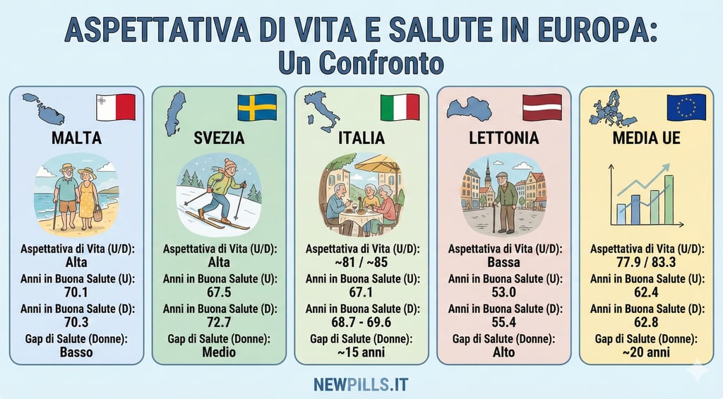 I dati Eurostat rivelano una realtà agrodolce per l'Italia. Sebbene il nostro Paese vanti una delle aspettative di vita più alte d'Europa (seconda solo a Spagna e Francia in alcune metriche), la qualità di questi anni aggiuntivi è spesso compromessa.